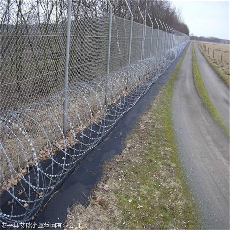 蛇腹形(型)刀刺網規格為BTO-22,刺圈直徑300mm,500mm,600mm,800mm,900mm等鍍鋅噴塑。刺繩規格為雙股2mm鐵絲捻扎而成