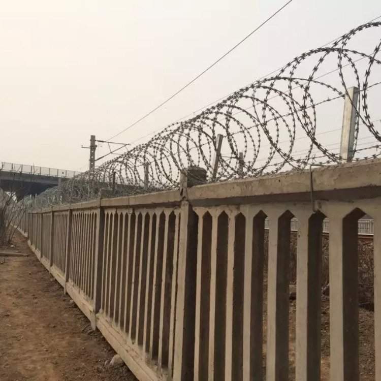 鐵路安裝刺絲滾籠又名刮刀型刺絲,是一種發展起來的防護、隔離能力較強的新型防護網產品。鋒利的刀型刺由雙線扣裝后成蛇腹狀,既美觀又讓人不賽而栗。起到了很好的阻嚇作用。同時該產品具有美觀、防阻效果好、施工便利等優點。刺絲滾籠支架一般用于鐵路防護用,因刀片鋒利不易觸摸,起到一定的嚇阻作用那個,刀片刺繩,用途比較廣泛,他可以用于居民的墻體防護,也可以用來圈地等,該刺繩防盜效果比普通刺繩要好,價格也不高,所以刀片刺繩越來越應用廣泛。