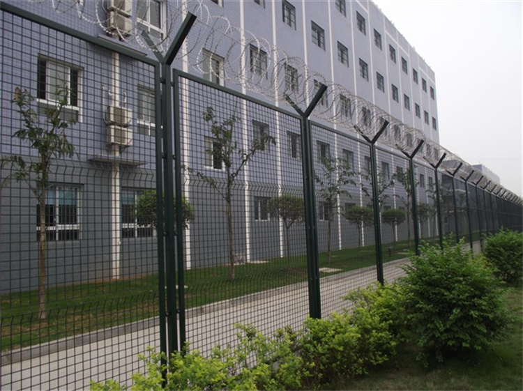 又稱監獄護欄網或監獄隔離柵,主要是采用高強度的刀片刺網與普通防護網的結合,由V型支架立拄,加強型焊接片網,安全防盜連接件和刀片刺網組成.刀片刺網是一種新型防護網,由銳利尖角鍍鋅鋼板或不銹鋼薄板做刀片,鋼絲做芯線組合而成的防護器材.