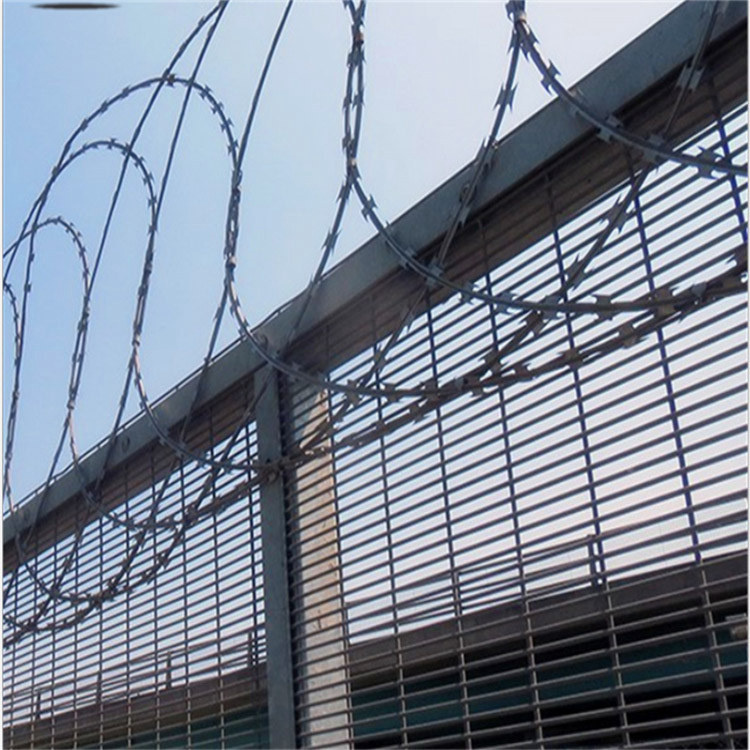 圍墻防爬刺鐵絲網(wǎng)種類1、刀片刺網(wǎng)平網(wǎng)。平面式安裝,三圈交叉固定。優(yōu)點是節(jié)省材料,美觀。