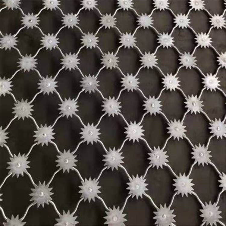 2.梅花刺片,梅花刺片是監(jiān)獄梅花刺片護欄網(wǎng)的核心部分,它由多個尖銳的刺片組成,形狀類似于梅花,因此得名。梅花刺片采用高強度鋼材制成,具有堅固耐用、鋒利尖銳的特點,能夠有效地防止人員攀爬和破壞。