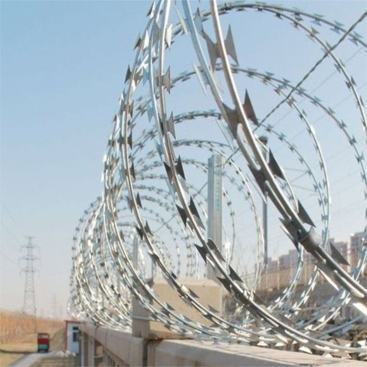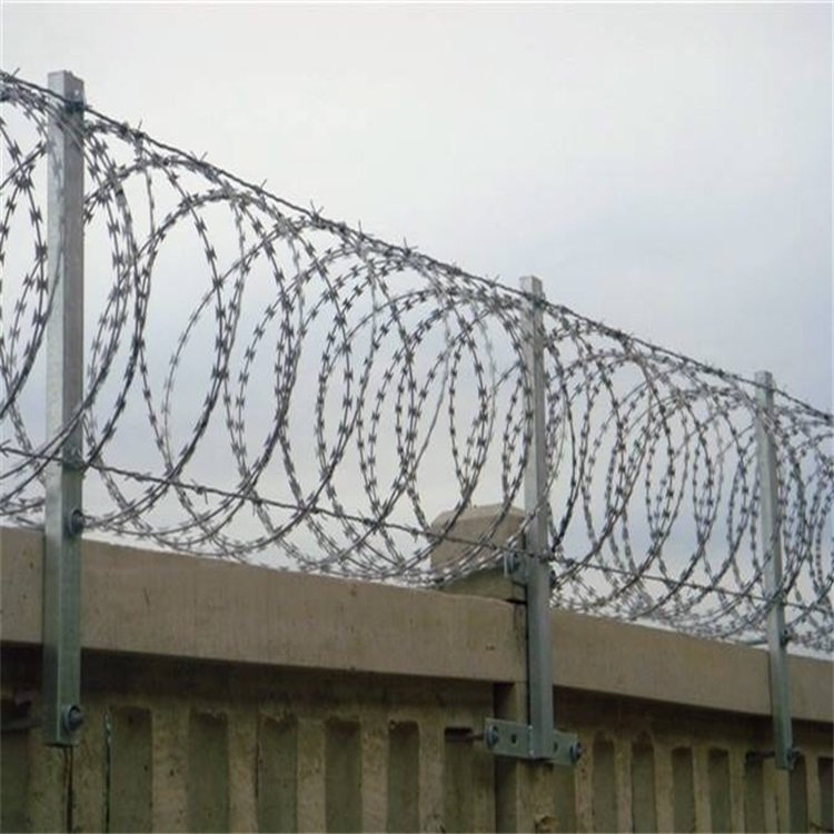 高鐵刺絲滾籠的主要材料是鍍鋅鋼和不銹鋼制成,其刀片由Q195鋼板制成,厚度為0.5毫米。經(jīng)久耐用:鋼筋混凝土圍欄+0.5m高強(qiáng)度滾動防護(hù)圍欄。刀片刺絲滾籠由于其獨(dú)特的形狀,刀片刺絲滾籠不容易觸摸。安裝刀片刺絲滾籠的懸掛兩個縱向支架(包括卡口),并用30*50*2.0mm矩形管接兩個50*4.0mm連接器。在安裝刀片刺絲滾籠的過程中,需要戴上防切割手套,以防在安裝過程中被手割傷,避免不必要的損失這兩個支架的高度通常為730毫米。接頭支架由矩形鋼管制成,并連接到柱支架。刀片刺絲滾籠的刀片上印有0.5mm厚的Q195鋼板,支架放置在3M交叉護(hù)欄柱和中檔位置。 O195鋼板模切,厚度為0.5mm,在打開時,每個橫環(huán)的距離為20cm,縱向拉桿與中2.5mm冷鍍鋅鋼絲連接以將支架固定兩次。帶刺的滾子保持架的底部與鋼筋混凝土圍欄的頂部之間的垂直距離為0.05 m
