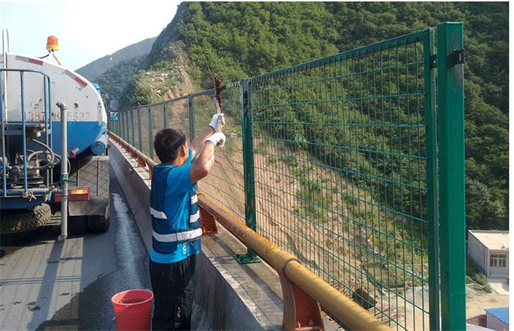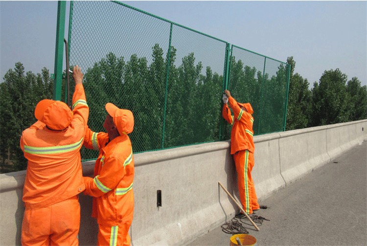 橋梁防拋網立柱的安裝過程中必須保證立柱的穩固,和基礎的連接緊密,必要時可安設支撐來穩固立柱。立柱安裝過程中應用小線對立柱安裝的順直度進行檢測和對局部進行調整,確保直線段直順,曲線段圓滑。立柱施工完畢后,監理工程師要對立柱的線形、高度進行檢測,以及和基礎連接的穩固性進行檢測。符合要求后,方可進行掛網施工。橋梁防拋網的網片必須和立柱連接牢靠,網面安裝后平整,無明顯翹曲和凹凸現象。橋梁防拋網施工完畢后,組織相關人員對橋梁防拋網的質量和安裝效果進行驗收