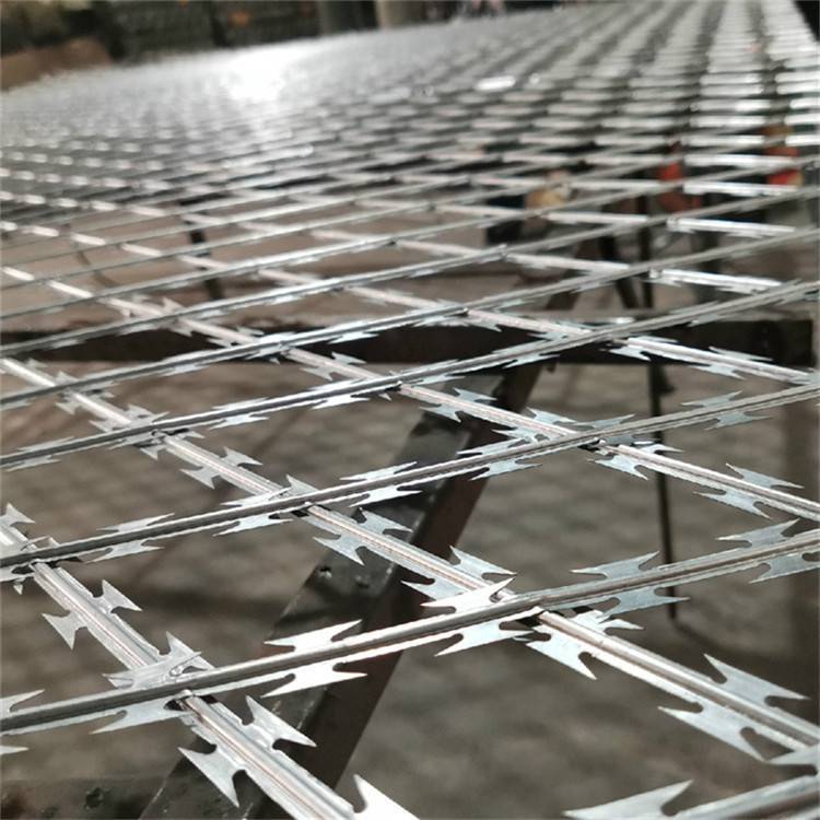 首先,要把監獄刀刺網的網身刀片刺網的按照客戶要求網孔用機器焊接好。網孔常用有7.5公分*15公分、10公分*10公分15公分*15