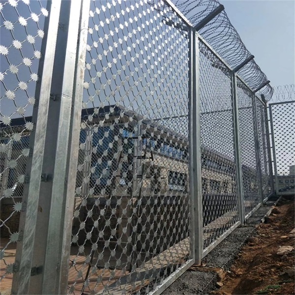 太陽花刺片鋼網(wǎng)墻也叫梅花刺片隔離網(wǎng)墻,整體架構(gòu)由美格網(wǎng)+梅花刺片、邊框、立柱、刀刺網(wǎng)組成,常用于監(jiān)獄、看守所、核電站、軍事基地等高安全場所。
