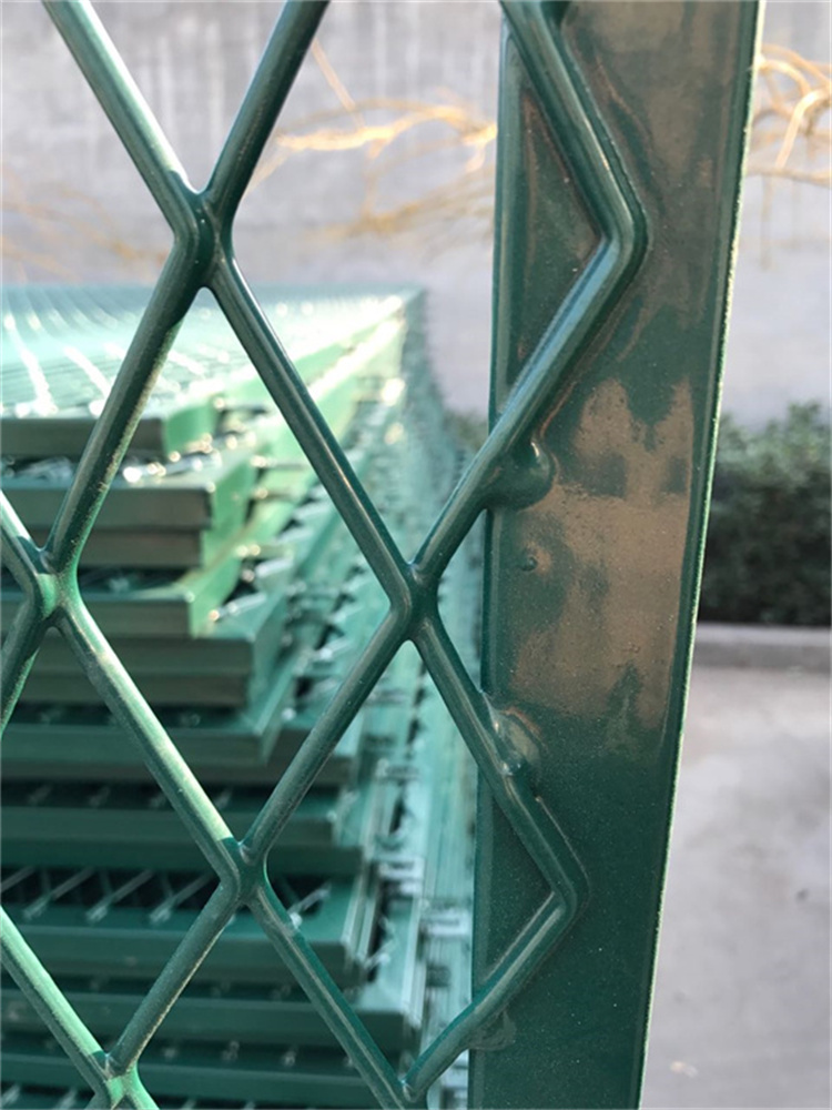 監獄隔離網噴塑又稱粉未噴涂,出來的成品表面光潔、細膩,外觀好。用靜電噴塑機把粉未涂料,噴涂到監獄隔離網的表面,在靜電作用下,粉未會均勻的吸附于隔離網的表面,形成粉狀的圖層;粉狀涂層經過高溫烘烤流平固化以后,出成品效果。噴塑效果在機械強度方面、附著力、耐腐蝕、耐老化等方面由于噴漆工藝,成本也不會比噴漆貴。一般監獄用的密紋網多用噴塑,因他網孔較密,網絲較粗,所以會采用靜電噴涂看一下效果.