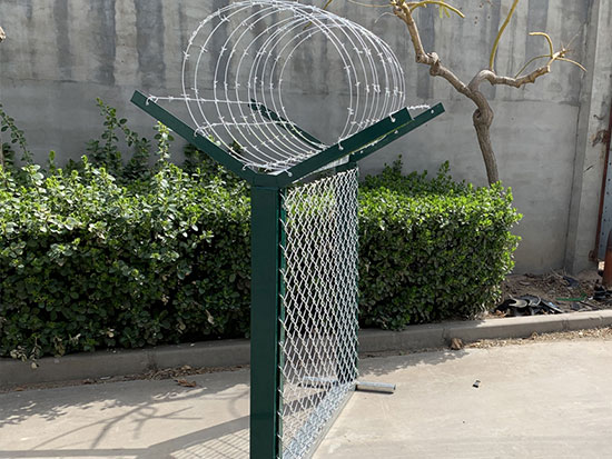 鋁包鋼絲機場護欄具有獨具匠心的鋼絞線穿插式連接立柱和網片,由Y型立柱、鋁包鋼勾花網、鋁包鋼刺絲網組成。在保證美觀大方、增強通透性的同時,鋁包鋼機場圍界能夠承受20kN推力的鋁包鋼較線使整體國界足夠堅固實用,大大降低人為對圍界的損壞,抵御外來人員入侵。鋁包鋼機場國界具有美觀實用、防腐性好、無需保養、防攀爬能力強、方便運輸和安裝等特點,關鍵的是鋁包鋼絲機場護欄可以使用30年以上,強度可達600Mpa。主要適用于機場周圍的隔離防護,美化及防翻越工程。目前是以定制生產為主。