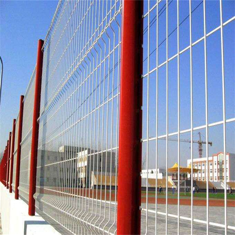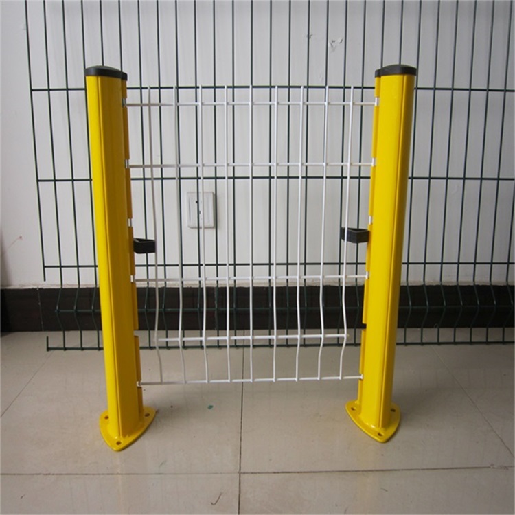 顏色分類桃形柱護欄網立柱和網片多用不同顏色如黃色,藍色,白色,紅色等兩兩組合,更顯美觀